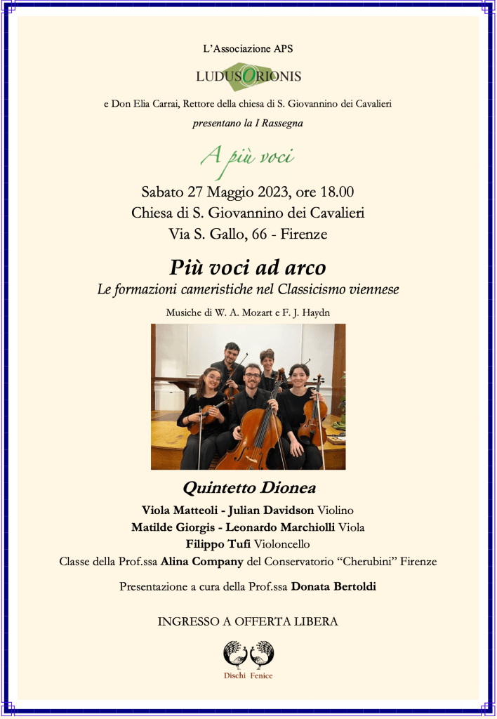 27 MAGGIO 2023 LUDUS ORIONIS PRESENTA “PIÙ VOCI AD ARCO”