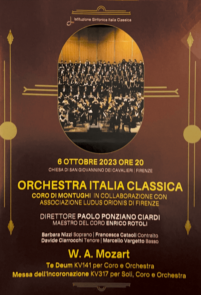 6 OTTOBRE 2023 ORCHESTRA ITALICA MOZART: “TE DEUM” E “MESSA DELL’INCORONAZIONE KV317”