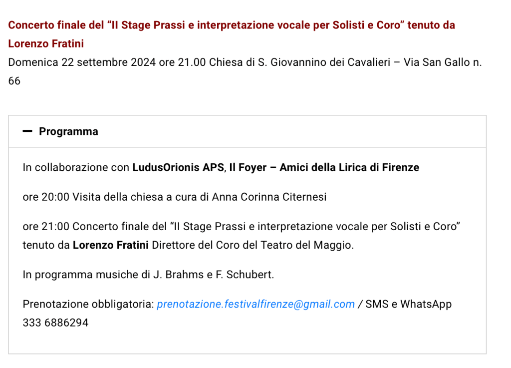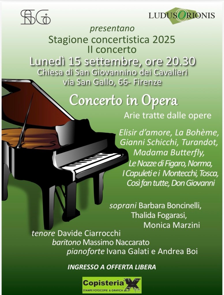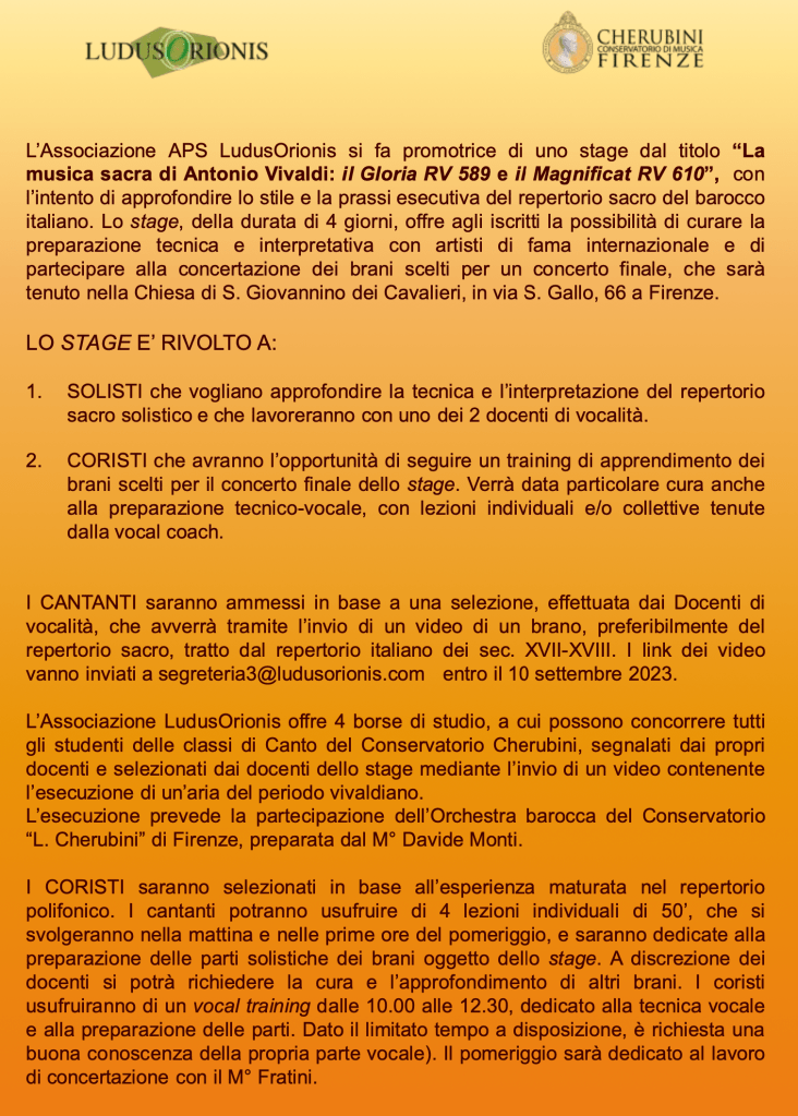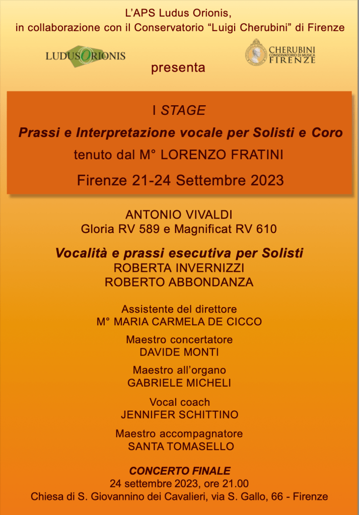 LUDUS ORIONIS, San Giovannino dei Cavalieri in collaborazione con il CONSERVATORIO LUIGI CHERUBINI: Secondo Stage musicale per solisti e coro