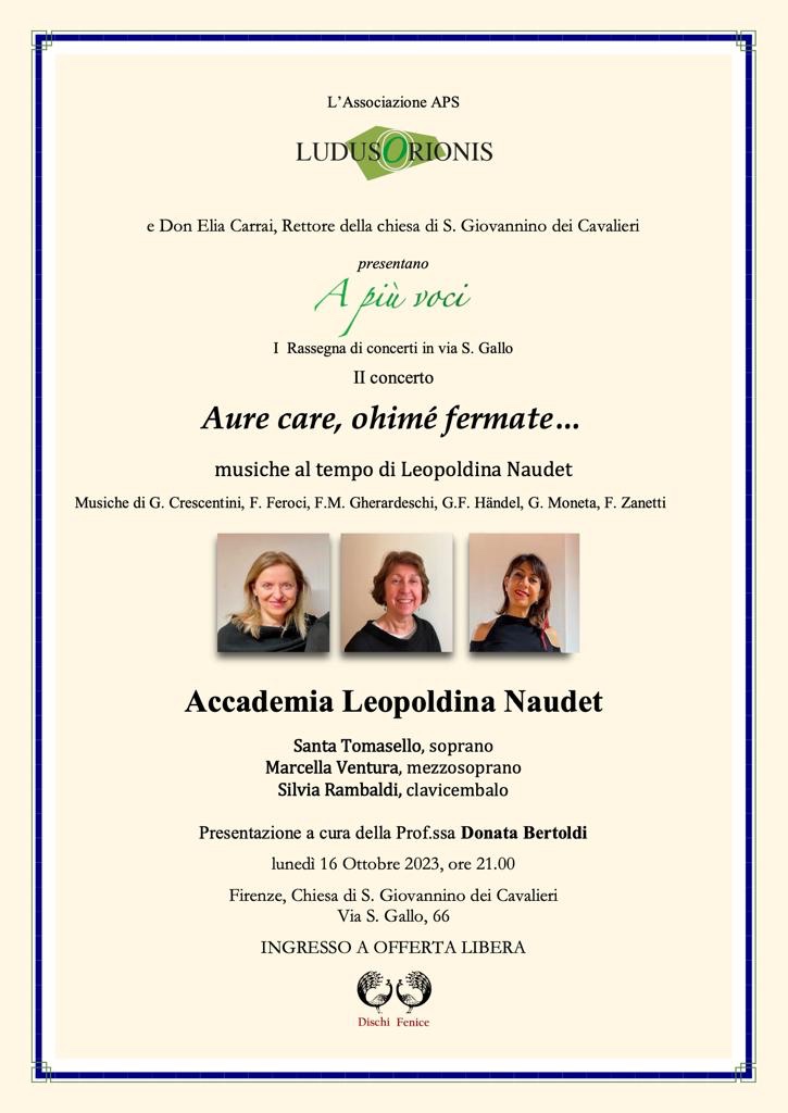 16 OTTOBRE 2023 ORE 21:00 SAN GIOVANNINO JLUDUS ORIONIS PRESENTA IL CONCERTO “AURE CARE, OHIMÉ FERMATE…”