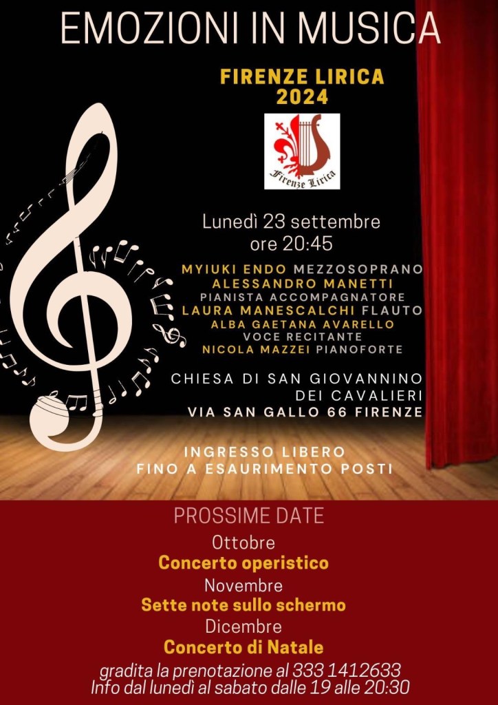 Lunedì 23 settembre Firenze Lirica propone Arie d’opera