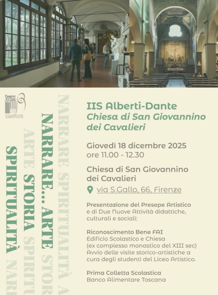 La collaborazione con l’IIS Alberti Dante prosegue. I ragazzi dell’istituto hanno presentato il nuovo presepio da loro realizzato per la nostra Chiesa. Hanno presentato il gruppo di lavoro per adesione al Fai del complesso scuola + Chiesa di san Giovannino, hanno raccontato del progetto Banco Alimentare a scuola. I ragazzi del liceo musicale hanno eseguito dei brani per chitarra.